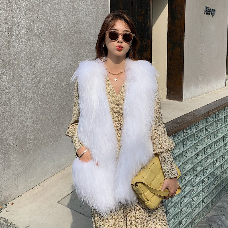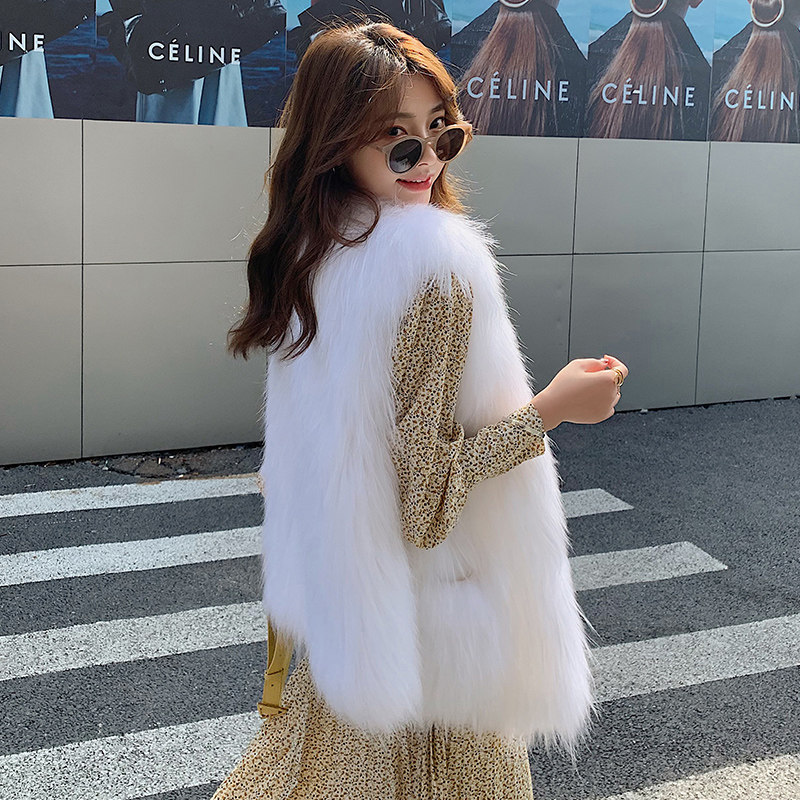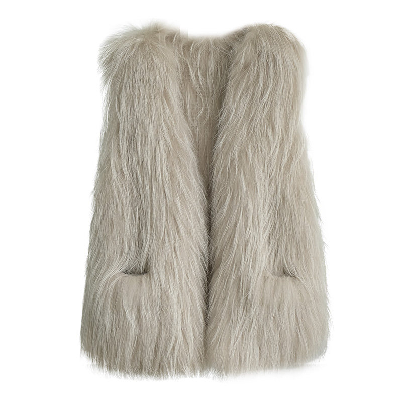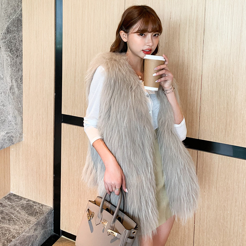 2022 new encrypted raccoon fur knitted leather grass vest woman young style fashion 100 hitch long version double sided vest