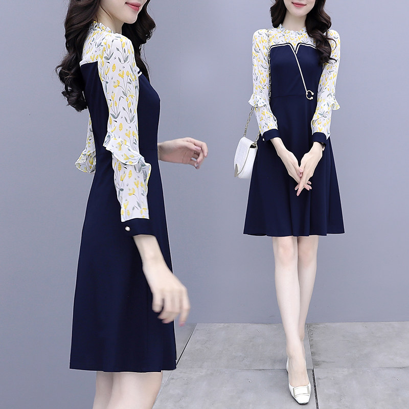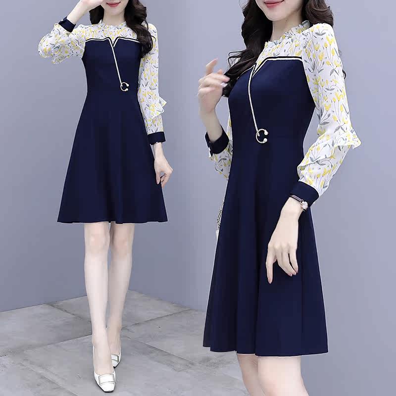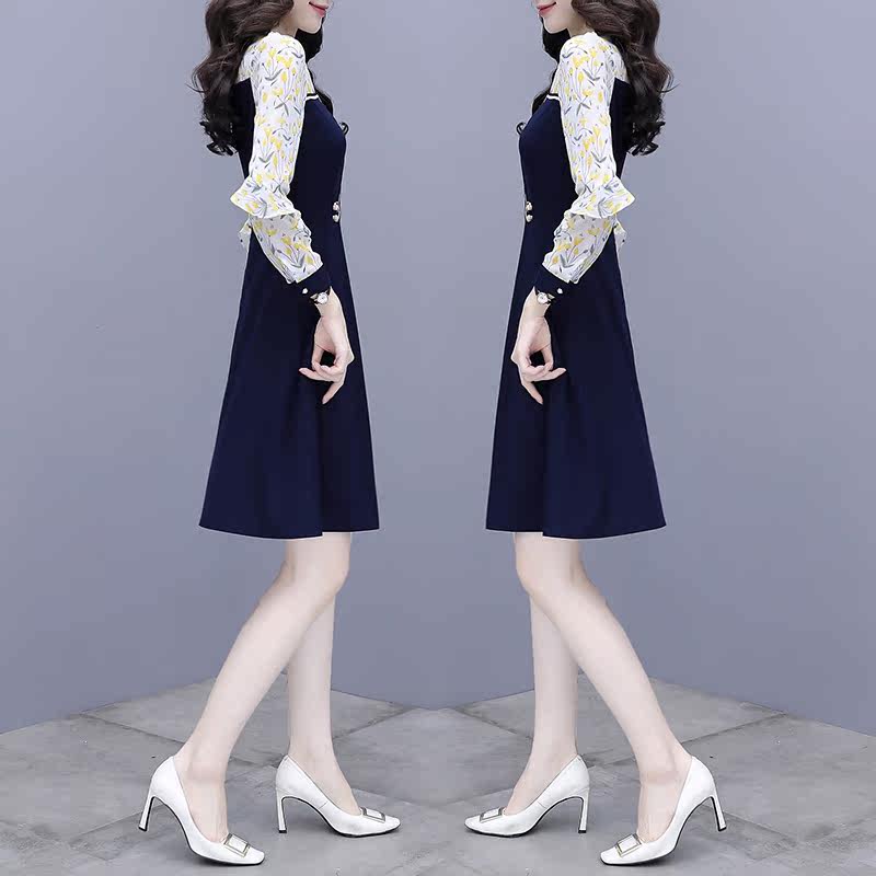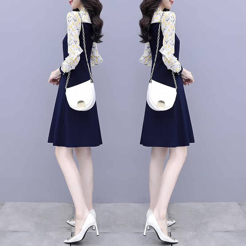 Knitted dress women's spring 2022 new waist slimming fashion temperament stitching chiffon a-line skirt autumn
