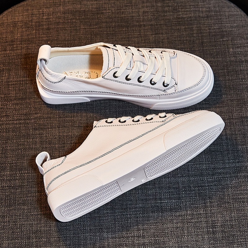 Tide brand ins street shooting net red small white shoes female 2022 new Korean version flat bottom wild leather thick bottom breathable skateboard shoes