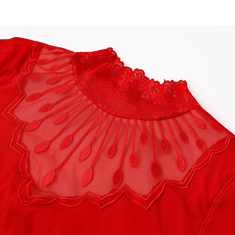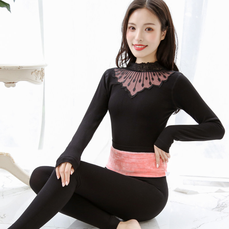 Middle and high collar lace heating clothes women's thickening and velvet suit students body tight cotton sweater autumn clothes sanitary pants winter