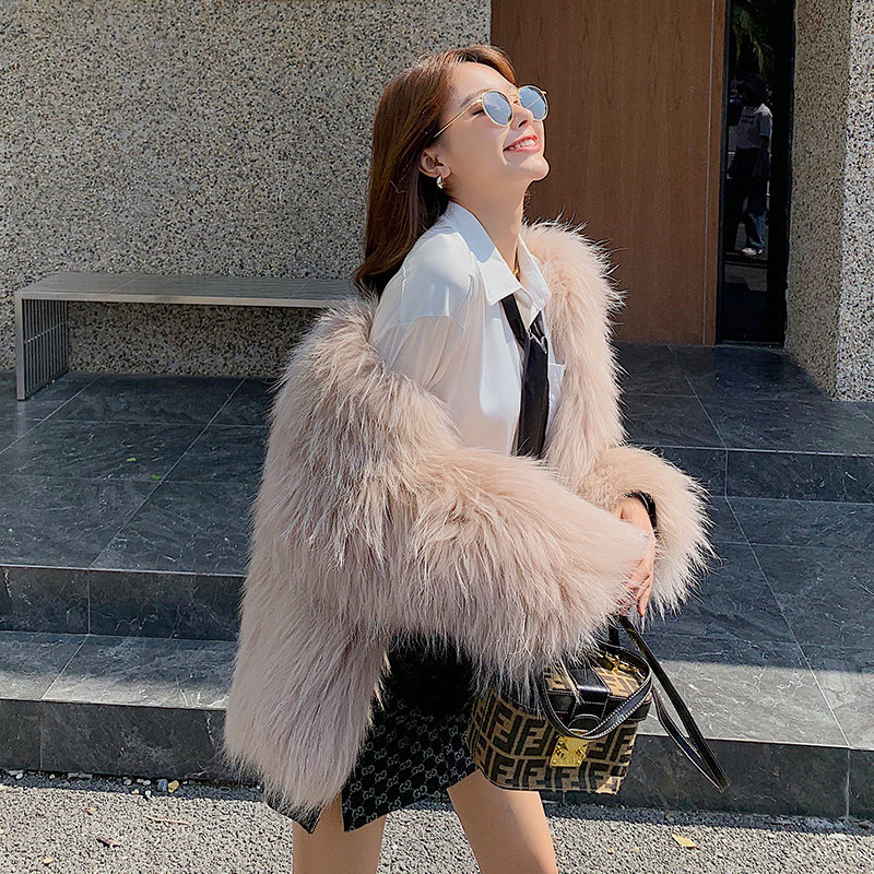 2021 autumn and winter new raccoon fur woven fur woven fur coat female mid-face pure handmade encryption loose large coat