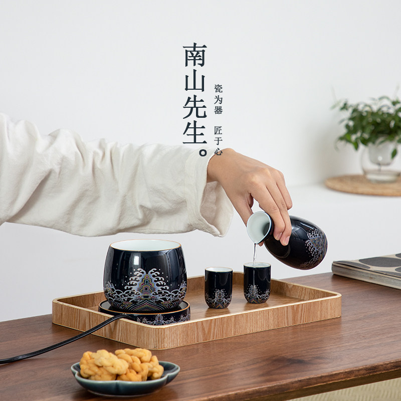 Mr. Nanshan enamel color warm wine vessel yellow wine hot pot home constant temperature wine glass Chinese style vintage wine set