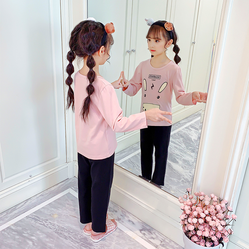 Girls' pajamas spring and autumn cotton set for children cotton home wear thin long sleeves for older children over 13 years old