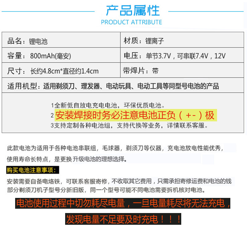 Hair straightener electric toothbrush toy razor accessories low self-release No. 5 14500 lithium battery 800mAh with welding feet