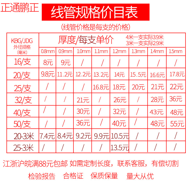 KBGJDG galvanized metal iron through wire pipe steel conduit positive through Peng zheng 162025324050 standard 1 non-unit price