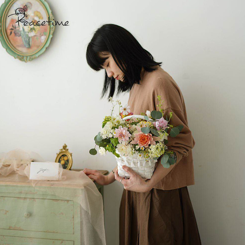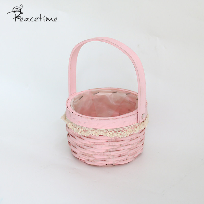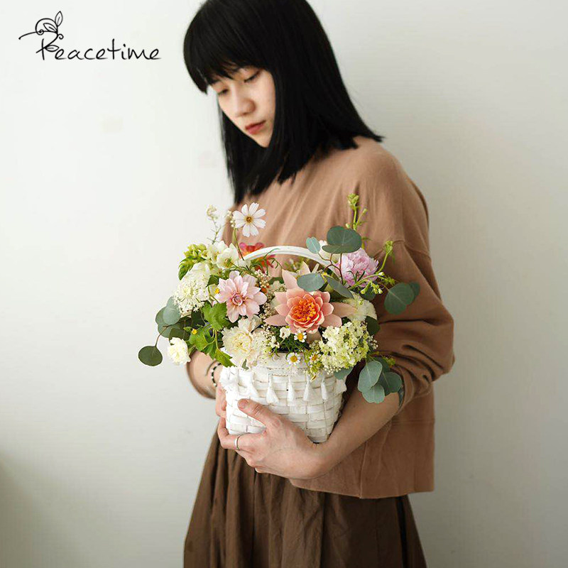 peacetime wood piece woven basket pearl decoration gift basket flower flower basket