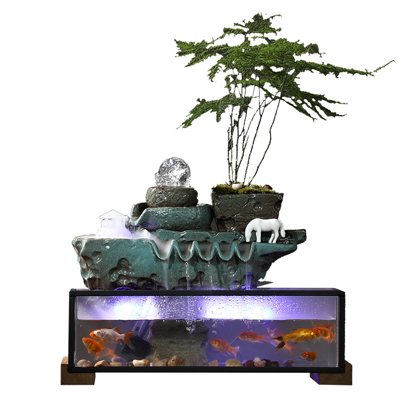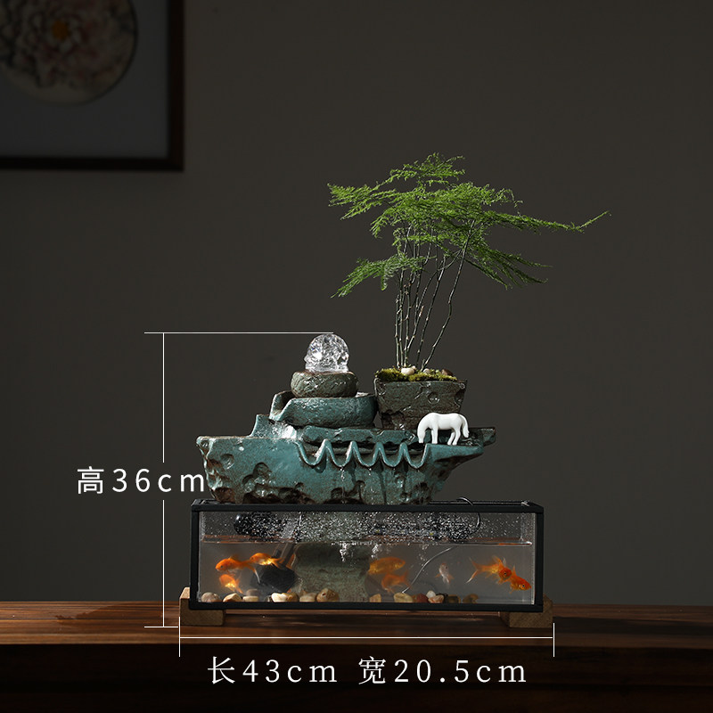 Running water fish tank ornaments Feng Shui lucky fountain living room office desktop water circulation atomization humidification opening gift