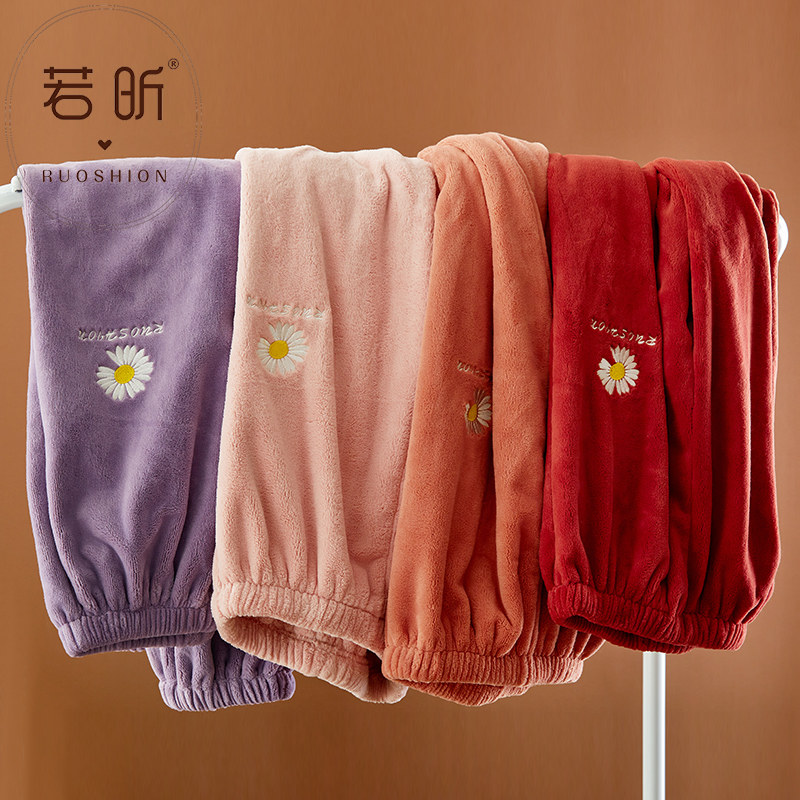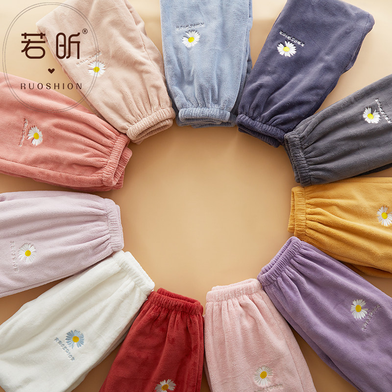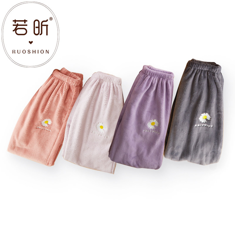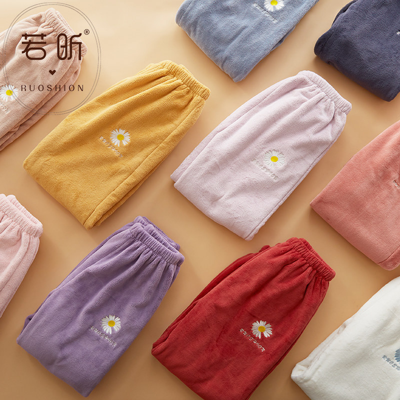 Coral velvet warm sleeping pants ladies pajamas thickened warm loose flannel home trousers autumn and winter models