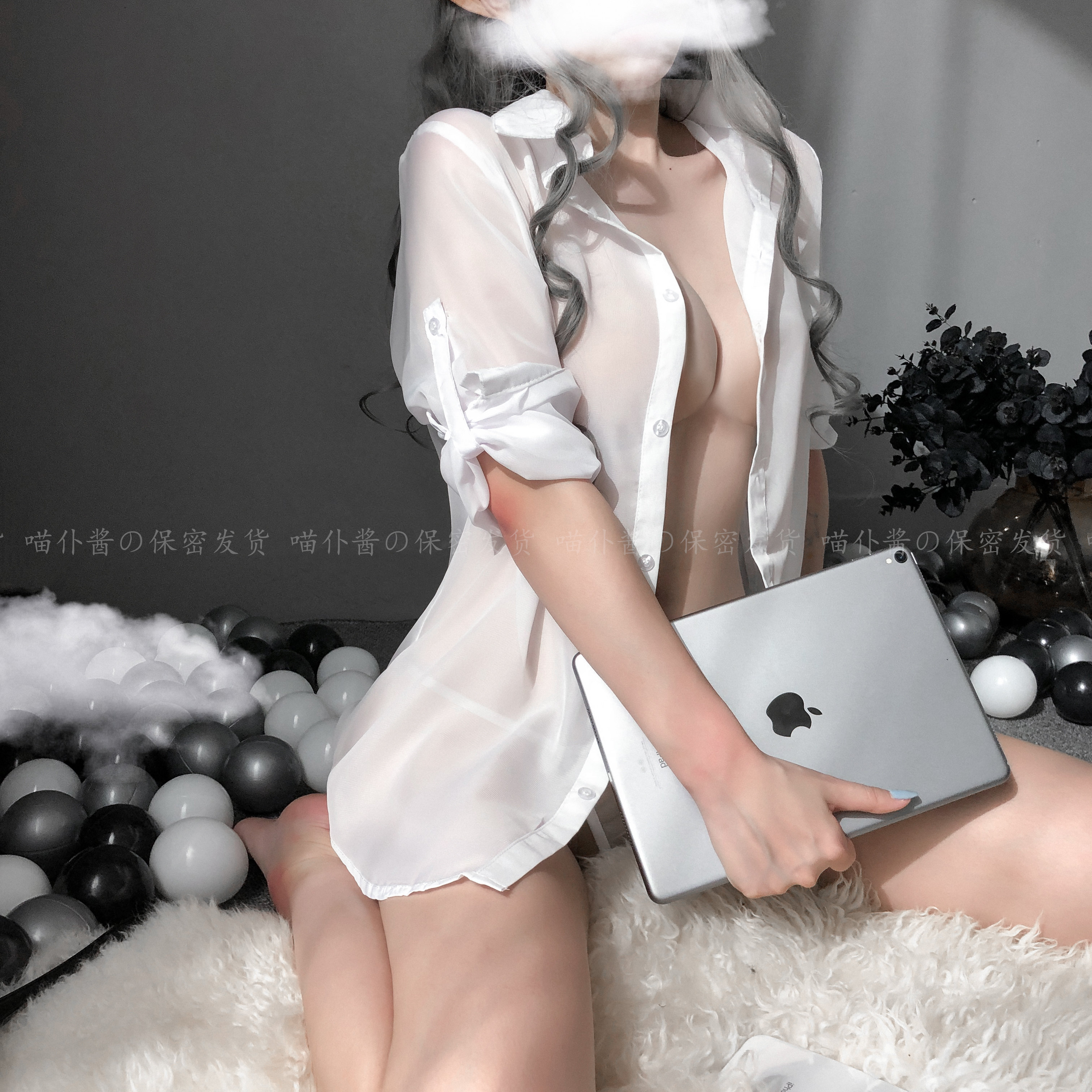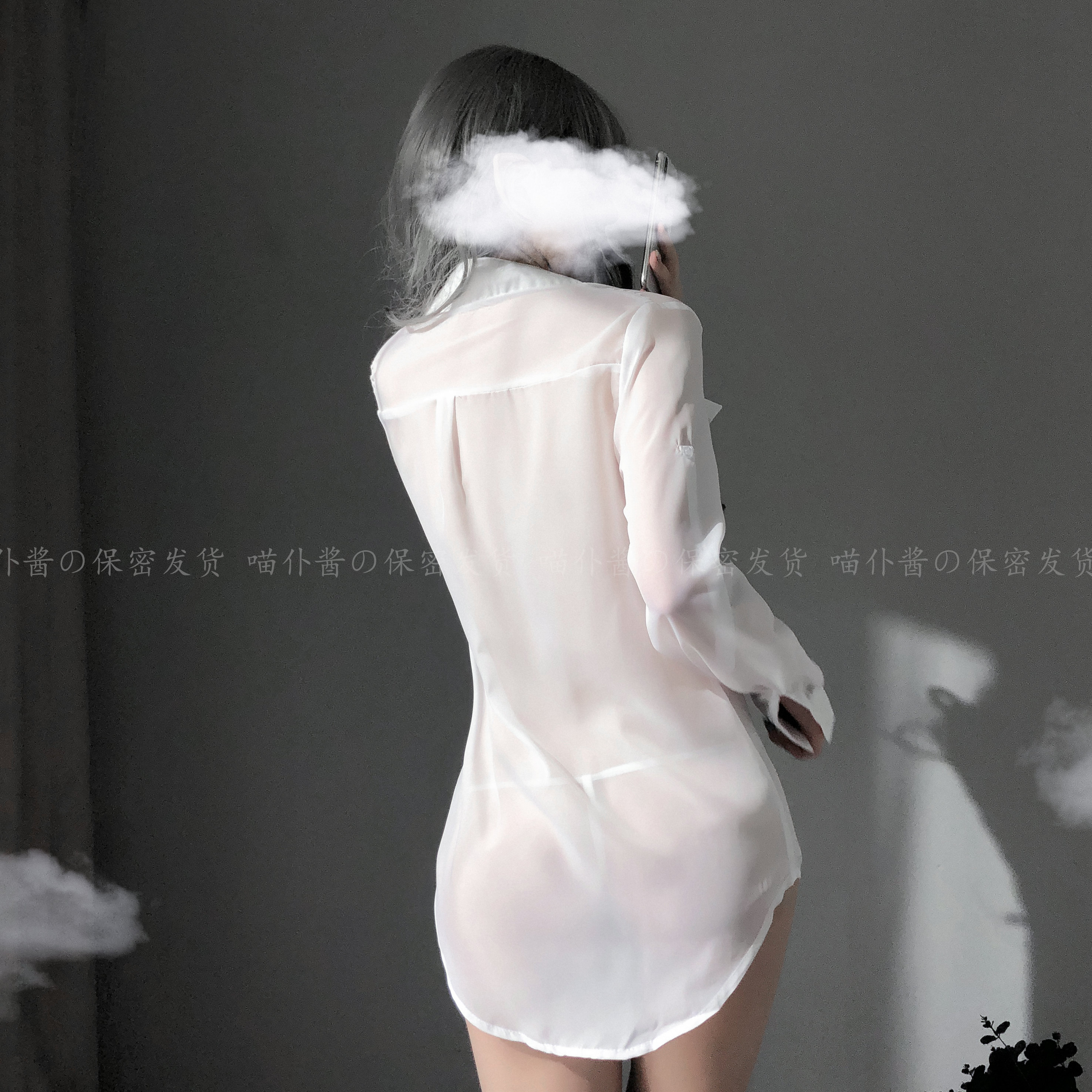 Boyfriend Wind Full Perspective Seduction Shirt Snowspun Pyjamas Woman Medium Long Version Loose Bathrobe Fire hot private room dating pyjamas