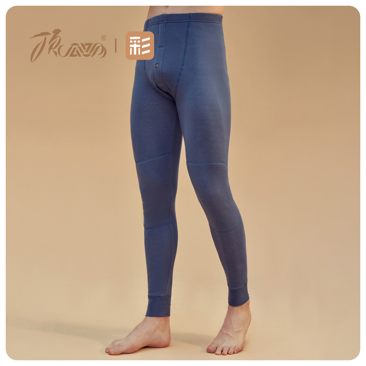 Dingguagua men's warm pants with knee pads plus velvet thickened double layer cotton autumn and winter warm pants thickened line pants