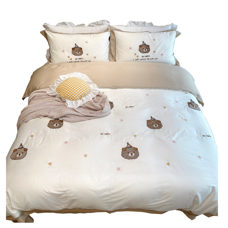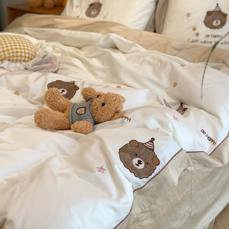 Honey juice bear cub ~ cute teddy bear 60 cotton long-staple cotton four-piece set cotton satin embroidery bedding