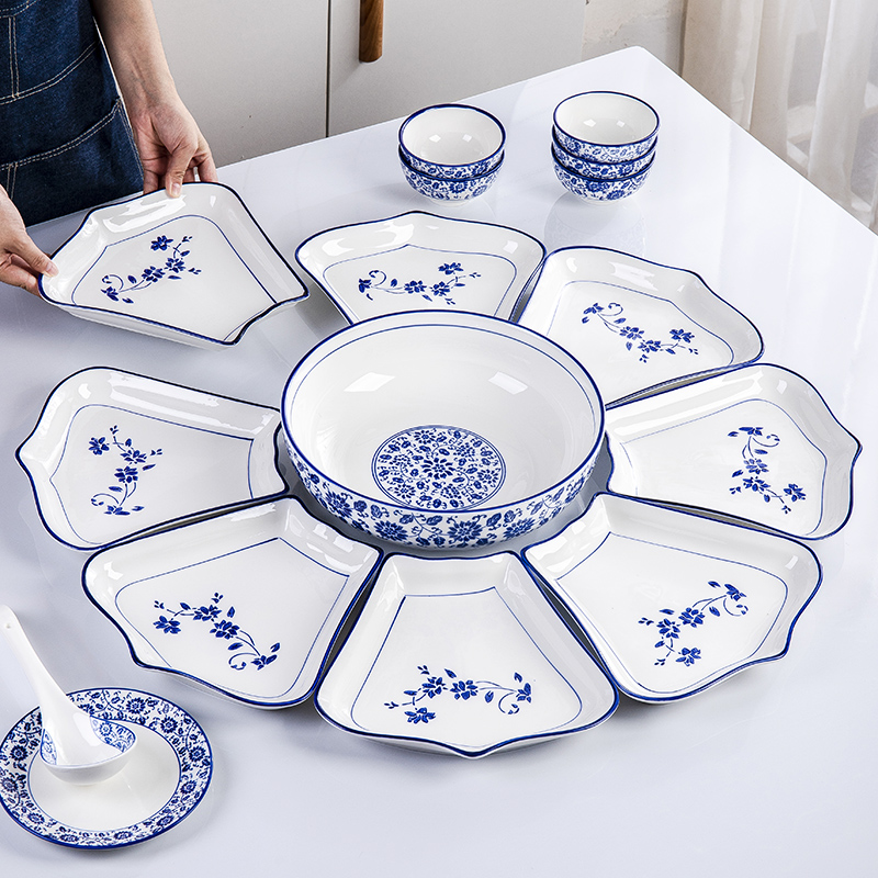 Small spoon Rice Bowl Bone Disc 48cm Fan 6 1 shallow bowl 66cm Fan shape 8 1 soup bowl (delivery spoon) 50cm Lotus 6 1
