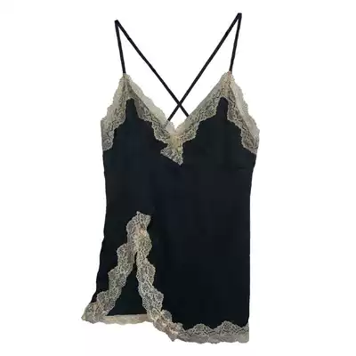 "LA" heart arson long version sexy spring and autumn pajamas female ice silk lace split suspender nightgown dress