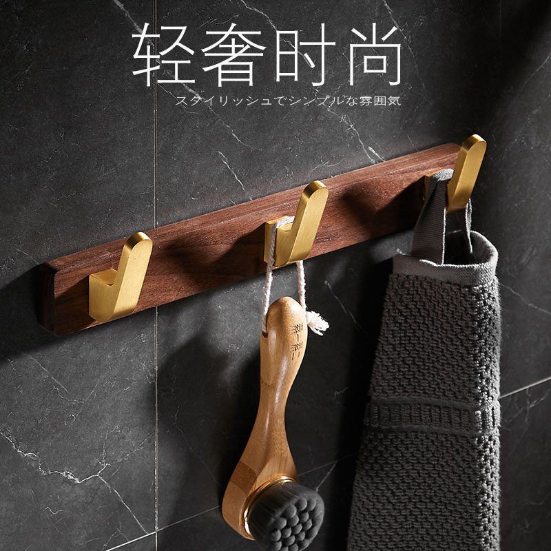 Solid wood hook entrance clothes hook into the door wall free perforation Hanging clothes hook Hat hook Creative row hook light luxury