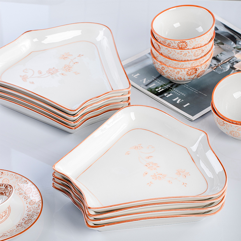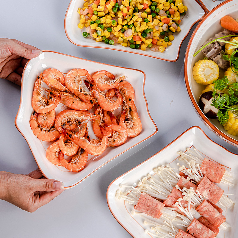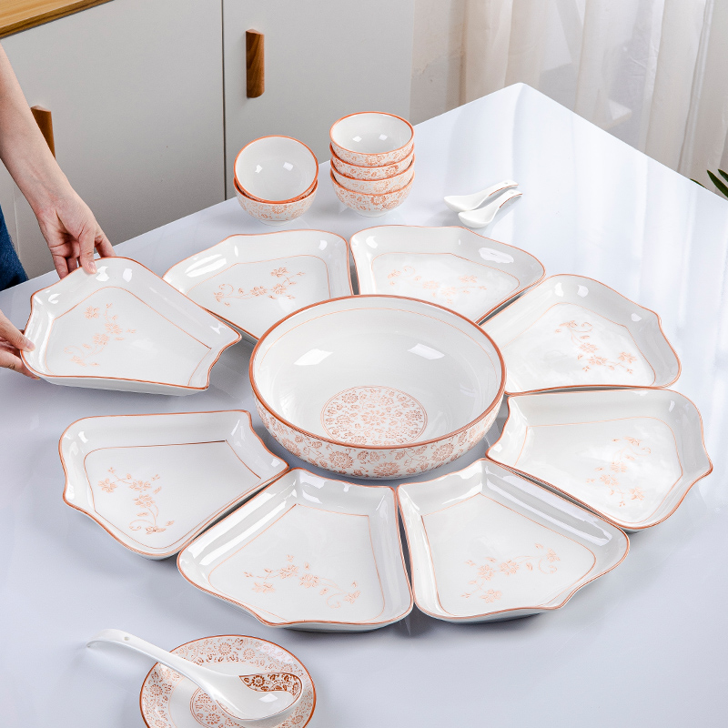 Net red set platter tableware combination fan-shaped dishes ceramic round table New Year reunion Chinese New Year plate creative home