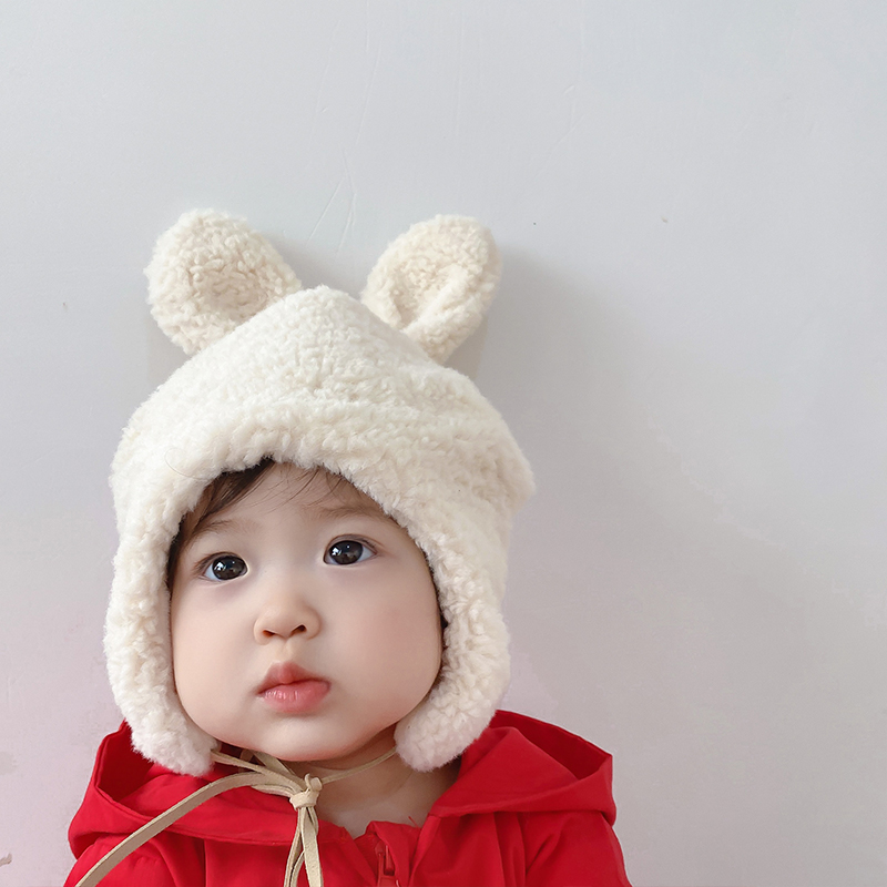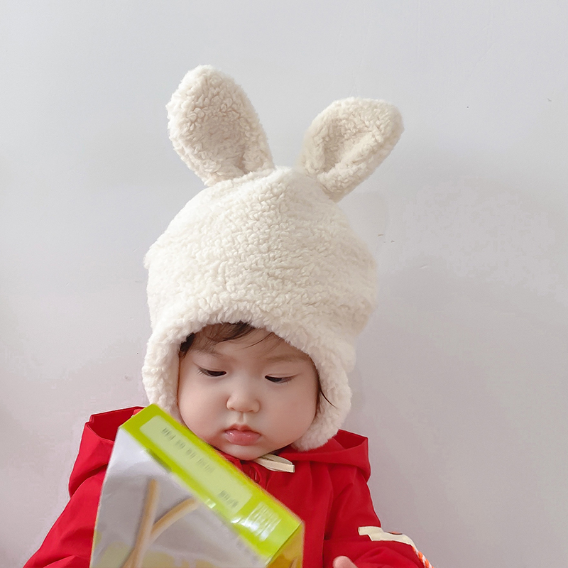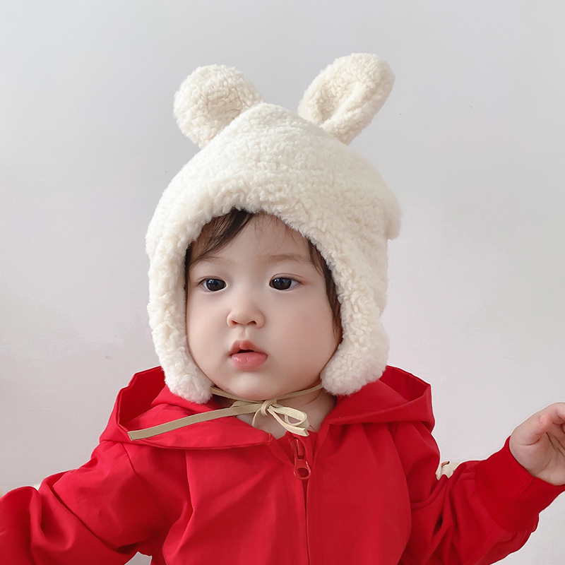 Baby hat autumn and winter net red cute super cute rabbit ears earmuffs infant baby thickened strappy headgear