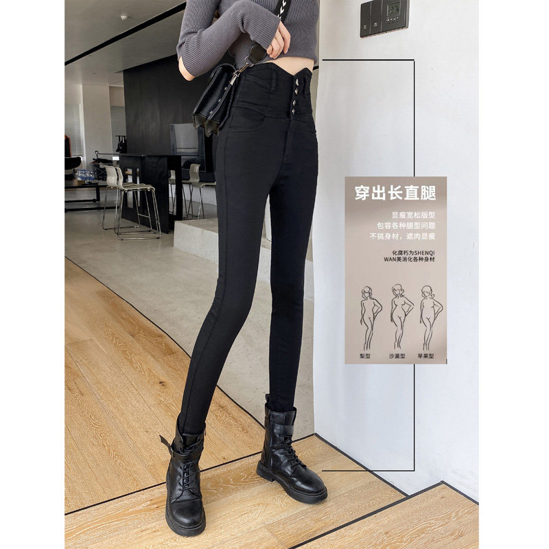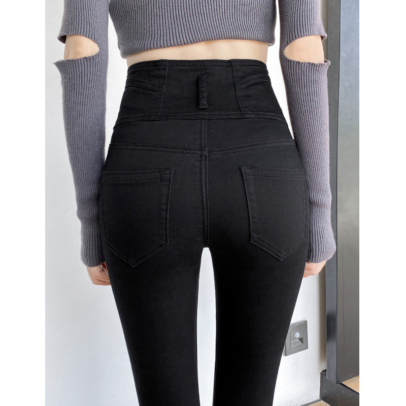 High waist black jeans woman 90% pants 2022 Summer new display slim fit high elastic tight fit small foot pencil pants
