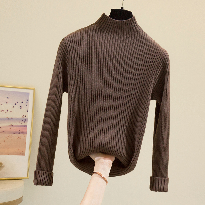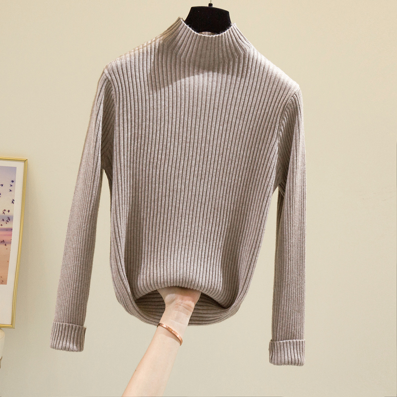 2022 autumn and winter new Western style semi-high collar knitted bottoming shirt women's inner self-cultivation solid color mid-neck pullover sweater trend
