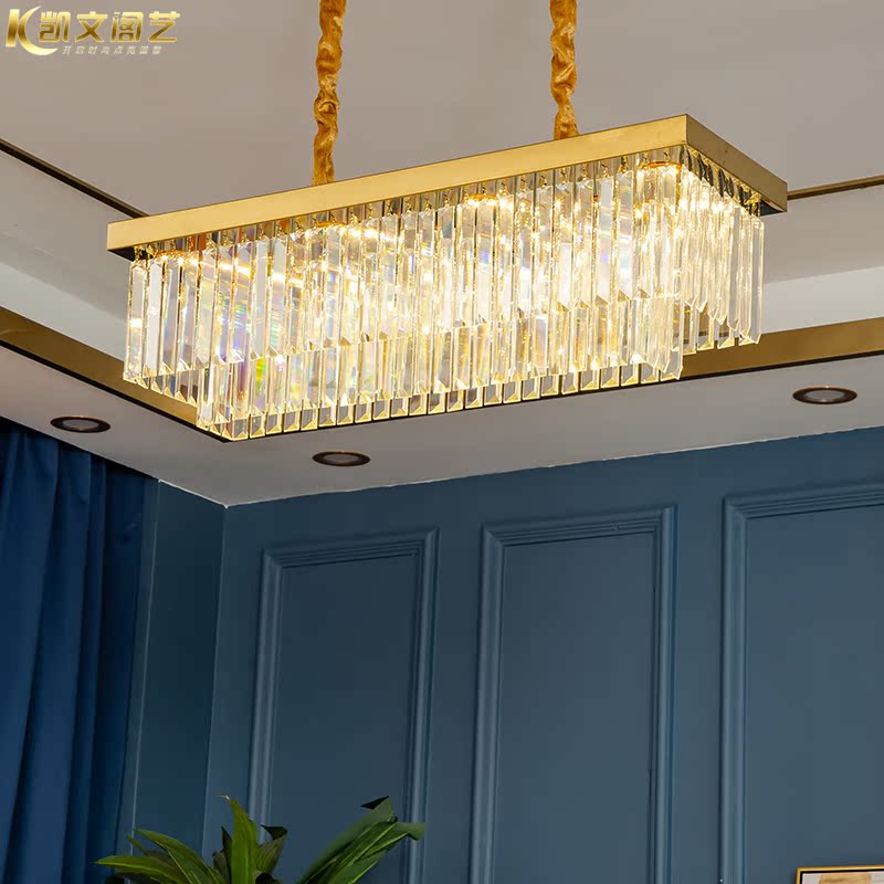 Rear Modern Crystal Lantern Dining Hall Chandelia Light Extravagant Rectangular Crystal Dining Hall Light Led Bar lamps minimalist atmosphere