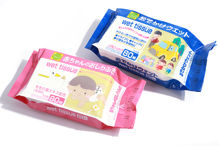 Exported to Japan, a pack of 80 pieces, two-color pink and blue home, going out, multi-functional baby adult wet wipes