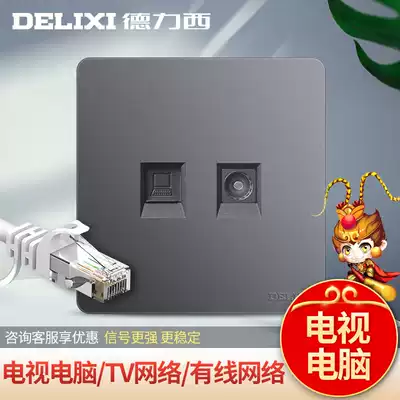 Delixi 86 TV computer socket home network route cable TV Network panel closed circuit TV socket Gray