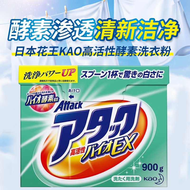 Japanese original Kao natural enzyme washing powder color protection quick penetration strong decontamination free scrub 900g