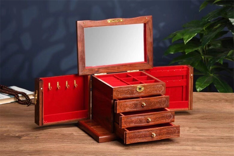 Redwood high-end jewelry box blood sandalwood with lock simple ring ear clock watch contains box solid wood large capacity