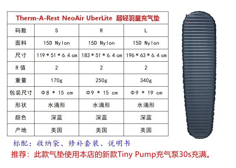 Therm-a-Rest NeoAir UberLite new ultralight inflatable cushion TAR outdoor anti-damp cushion sleeping cushion