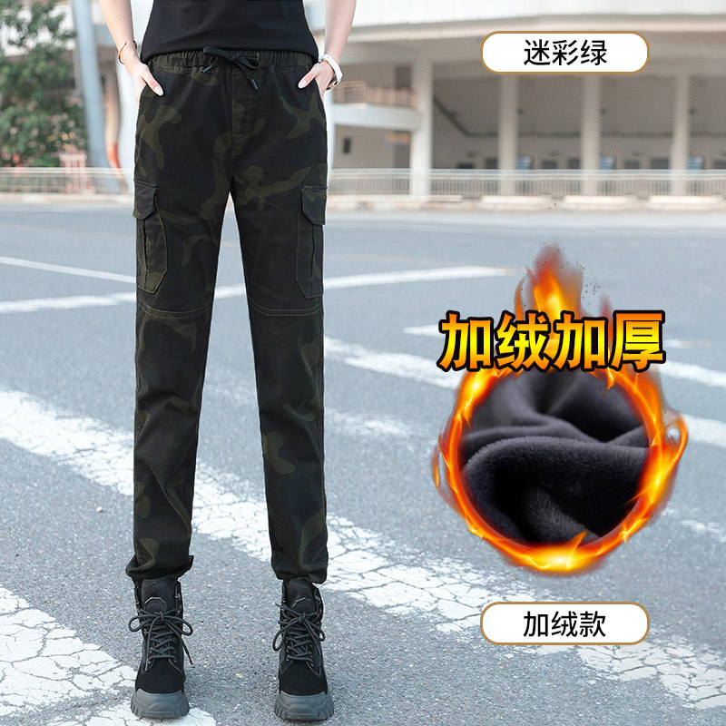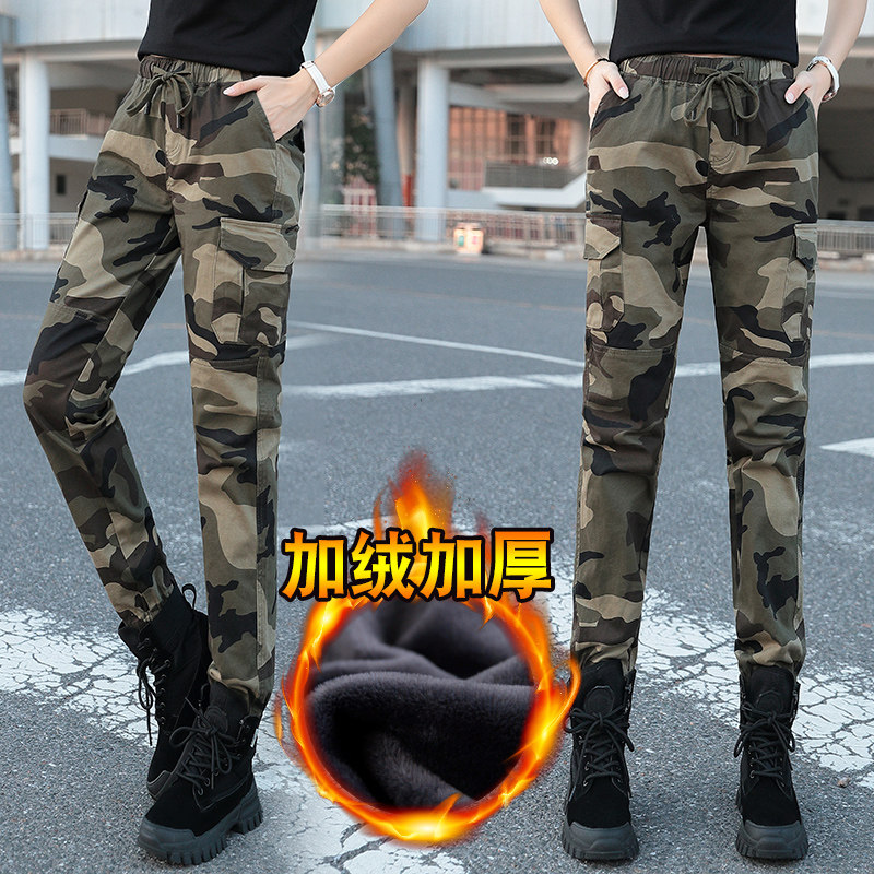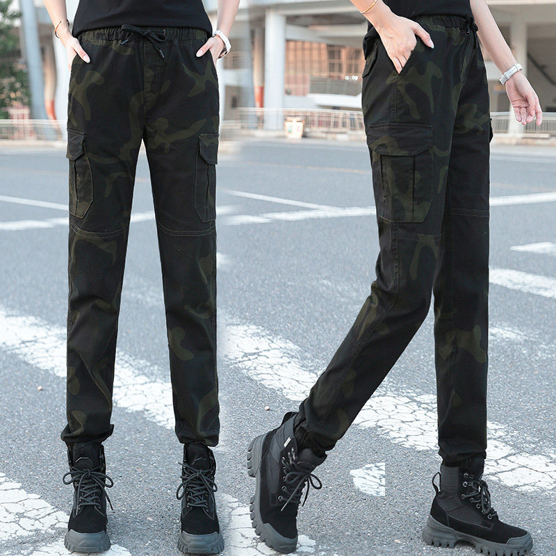 Chao brand camouflage sports pants pipe pants spring and autumn elastic waist Haren pants outdoor mountain climbing overalls big size trousers women's pants
