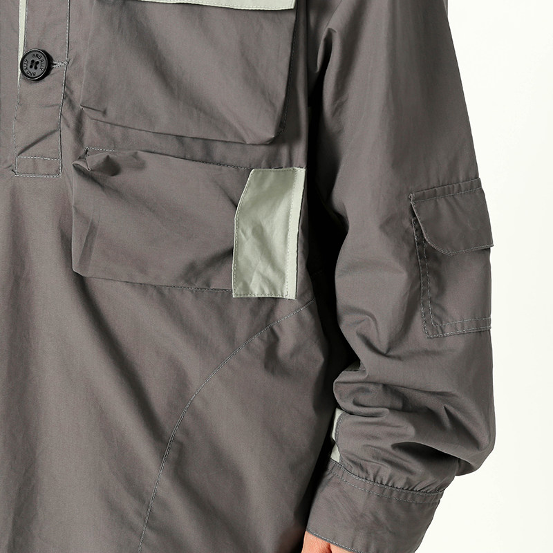 RCMAN Day ensemble American Coloured Grey Shirt Multi-Pocket Tooling Sleeve Head Retro Male and female inserts Lining Coat-Taobao