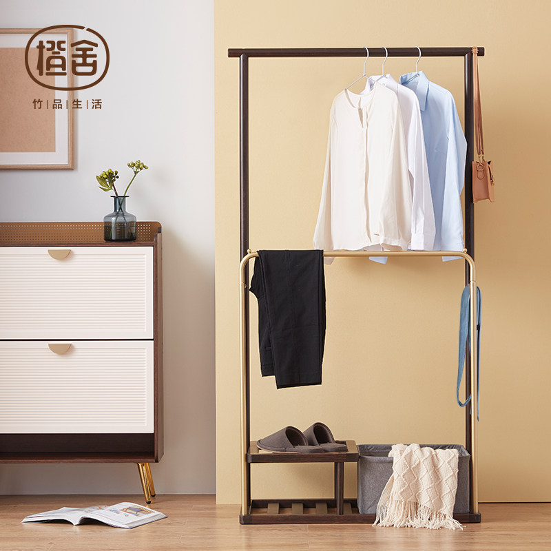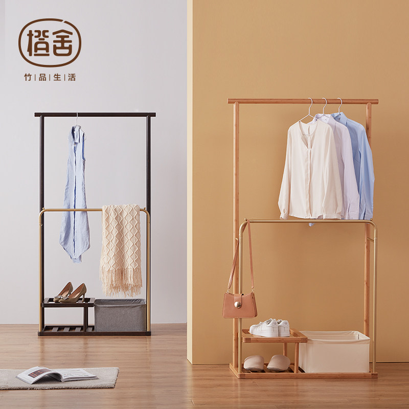 Orange House Nordic light luxury hanging hanger clothes rack coat rack metal bamboo solid wood bedroom hanger floor shelf