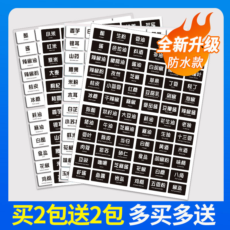 Blank handwriting section 72 stickers send markers(this section to buy 2 pieces only send blank 2 pieces) Seasoning section tear not rotten material 72 stickers package (buy 2 pieces to send 2 pieces) Seasoning section transparent material 72