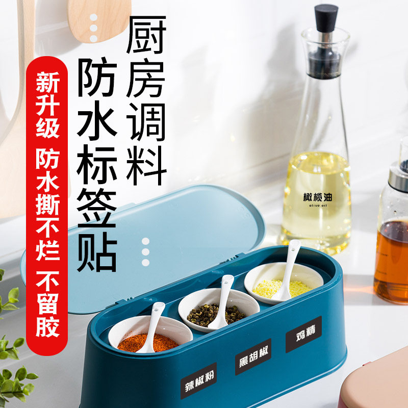 Kitchen seasoning label sticker Waterproof and oilproof Grains monosodium glutamate Light soy sauce oil Salt sauce vinegar Food jar bottle date Household storage classification mark sticker blank handwritten self-adhesive customization