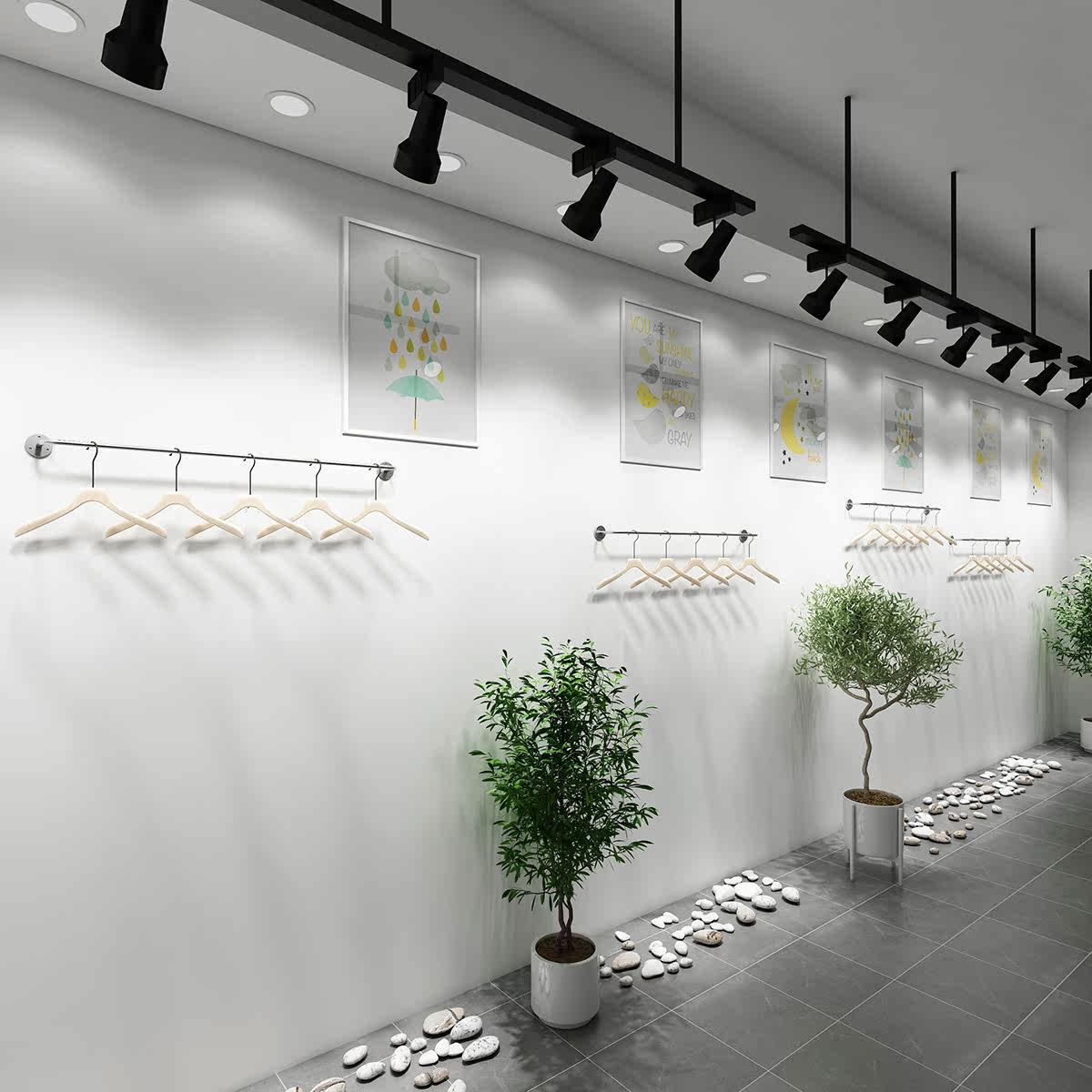 Clothing store display rack stainless steel women's clothing store clothes rack silver is hanging side hanger on the wall hanger display rack