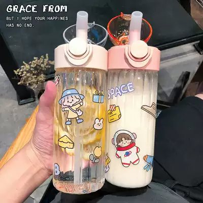 Water cup women with straw glass ins Wind Girls cute high-value adult portable cup Net red suction tube Cup
