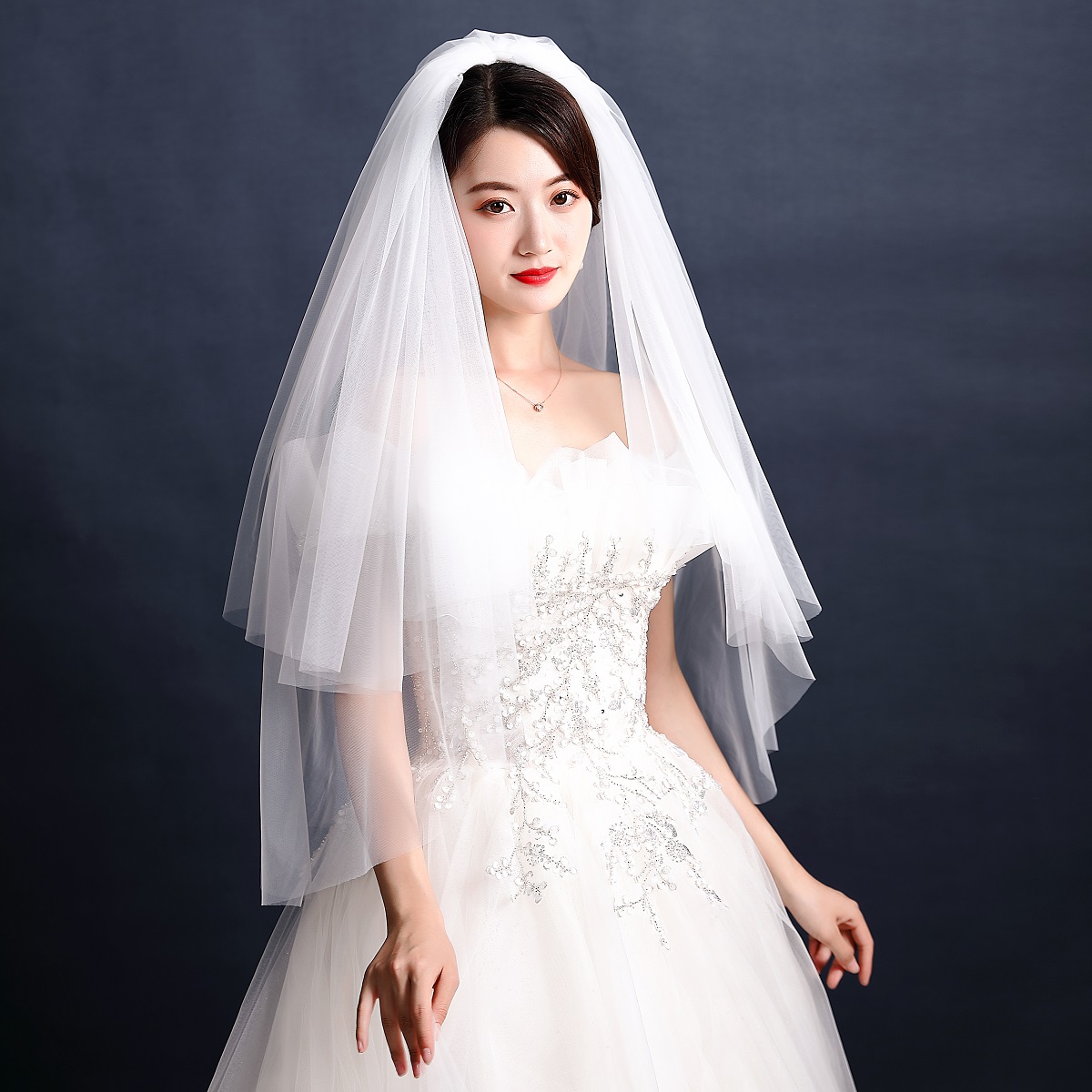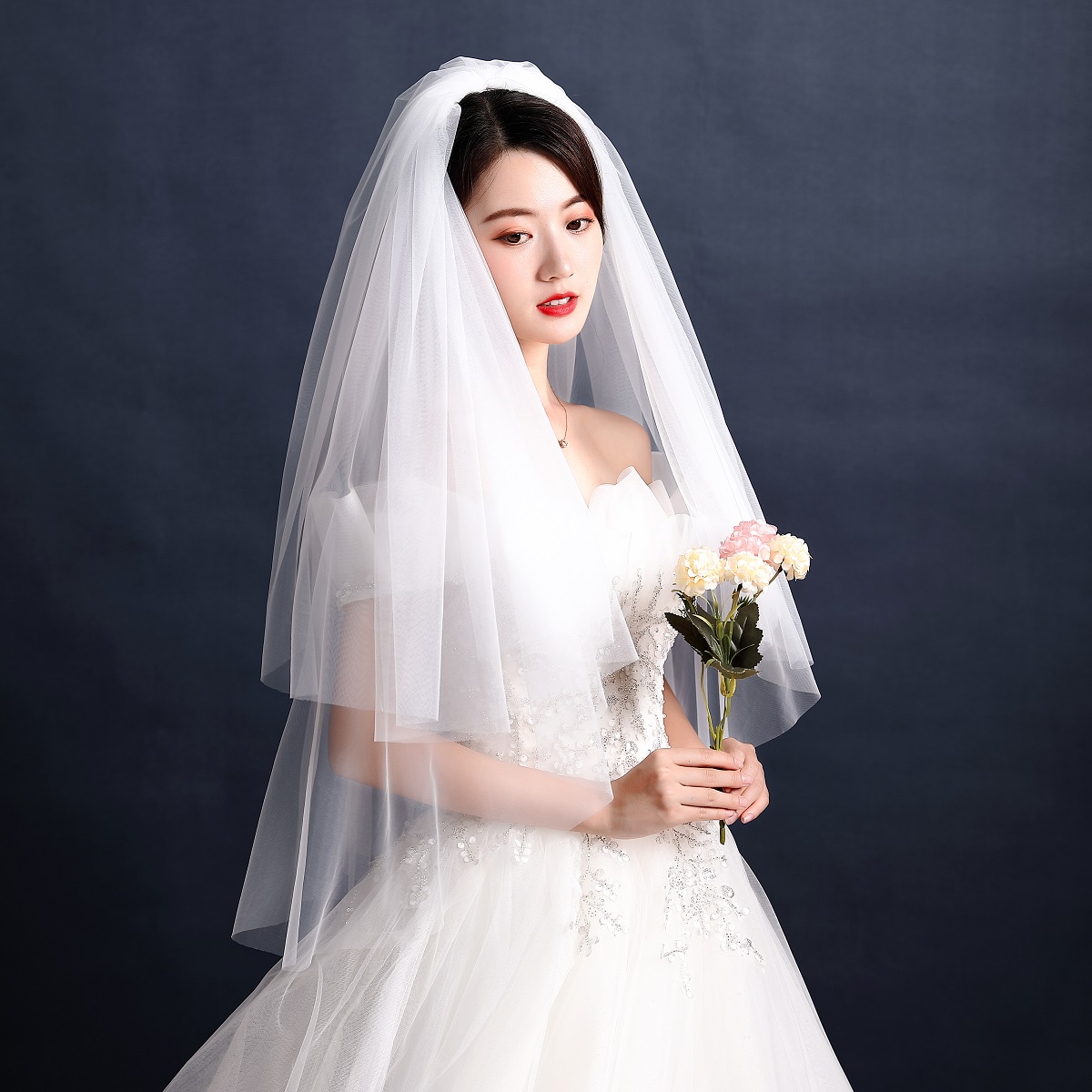 2020 new Korean Bride wedding veil headdress Super Xiansen Photo Wedding Dress Tour double Photo Veil