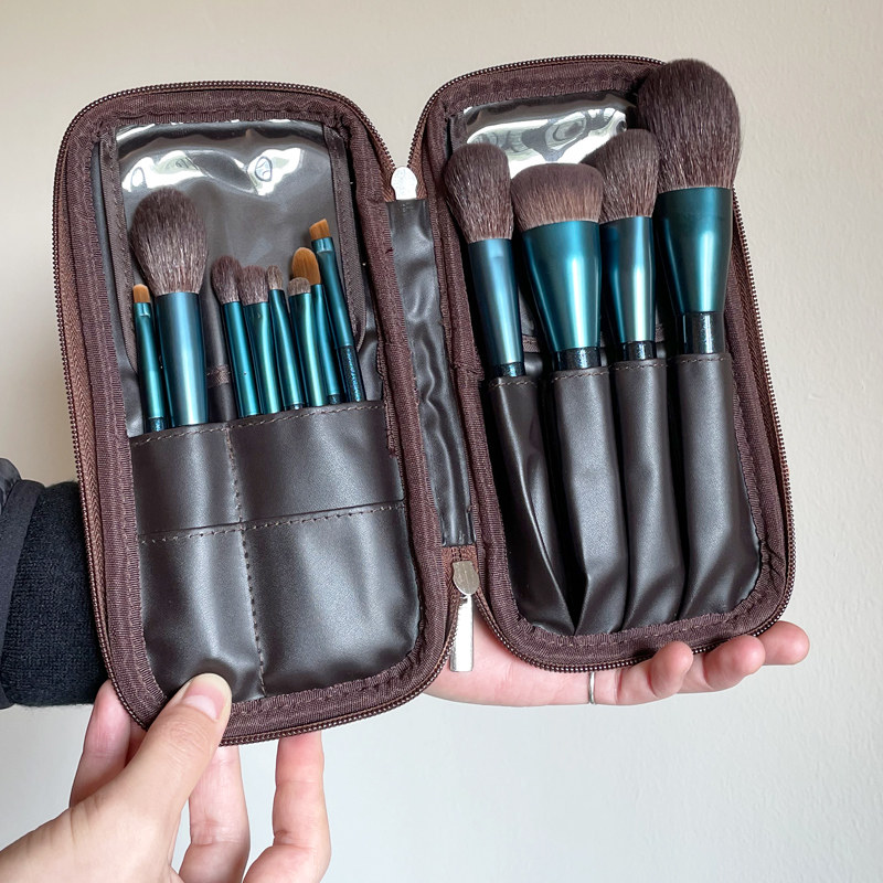 AIEVELYN Fine Light Front Wool Makeup Brush Set Portable Travel Carrying 12 Animal Hair Beginners Novice