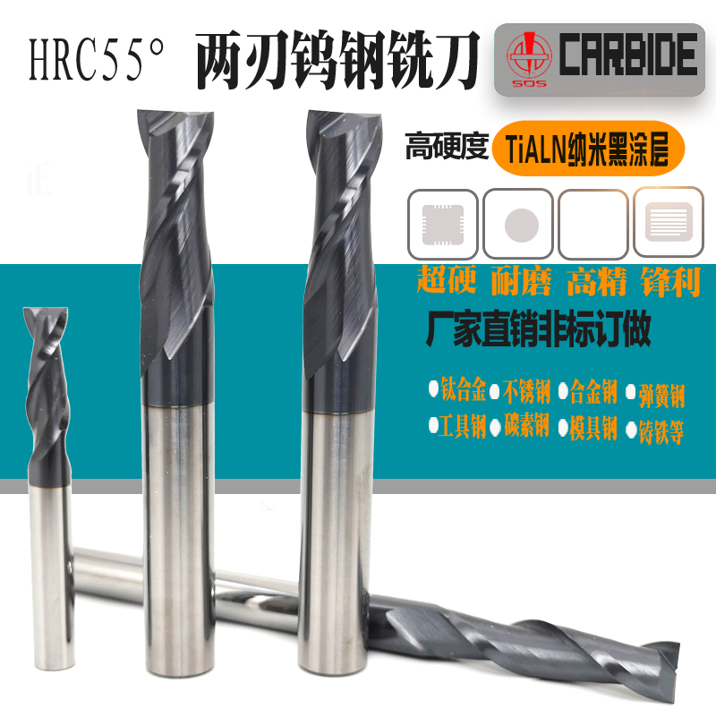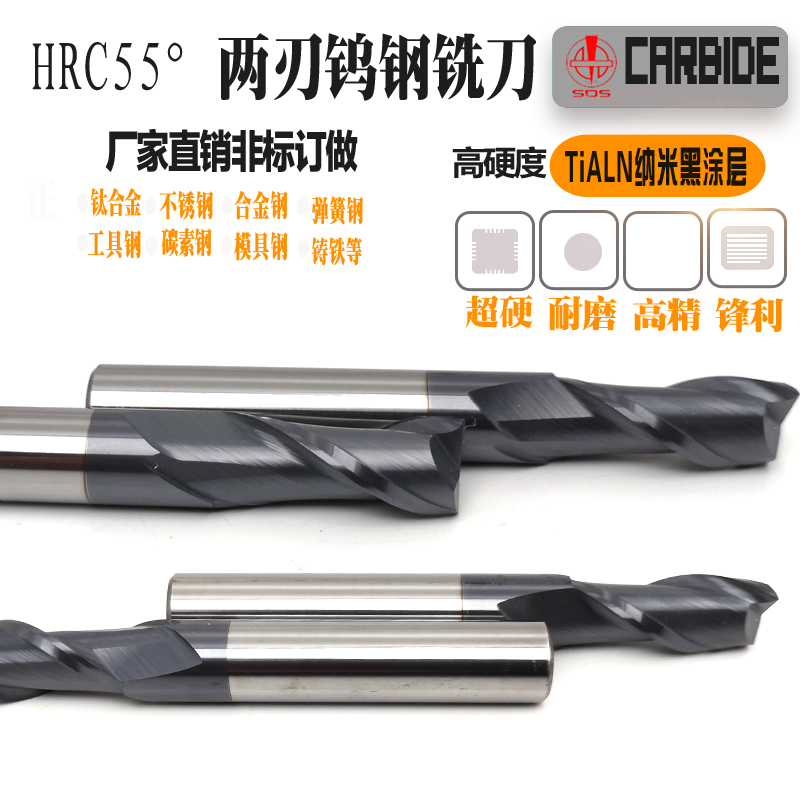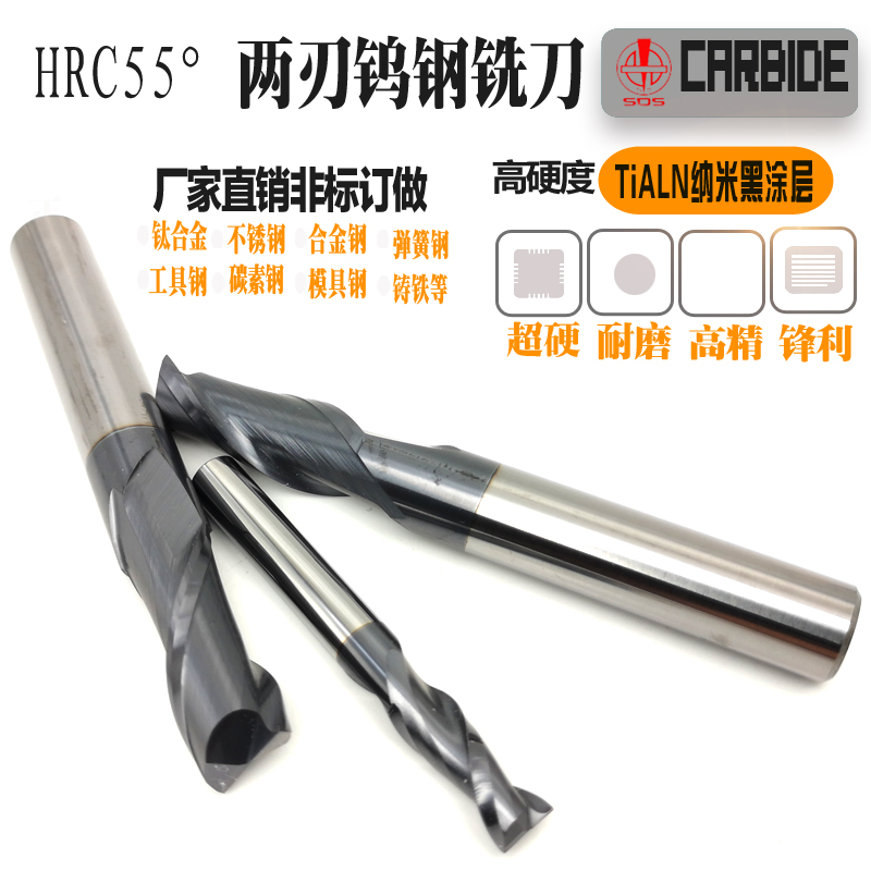 HRC55 degree hard alloy tungsten steel milling cutter keyway 2 blades CNC two-edge milling cutter 5 5-6-6 35-6 5-7mm