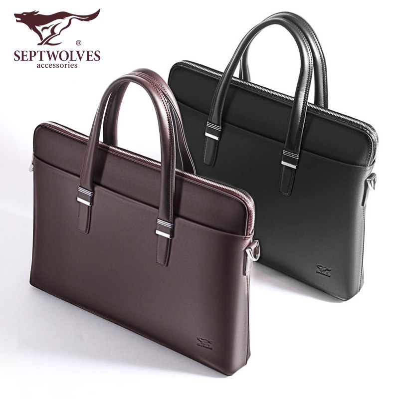 Septwolves men's messenger bag briefcase business leather handbag men's shoulder bag summer business bag large capacity