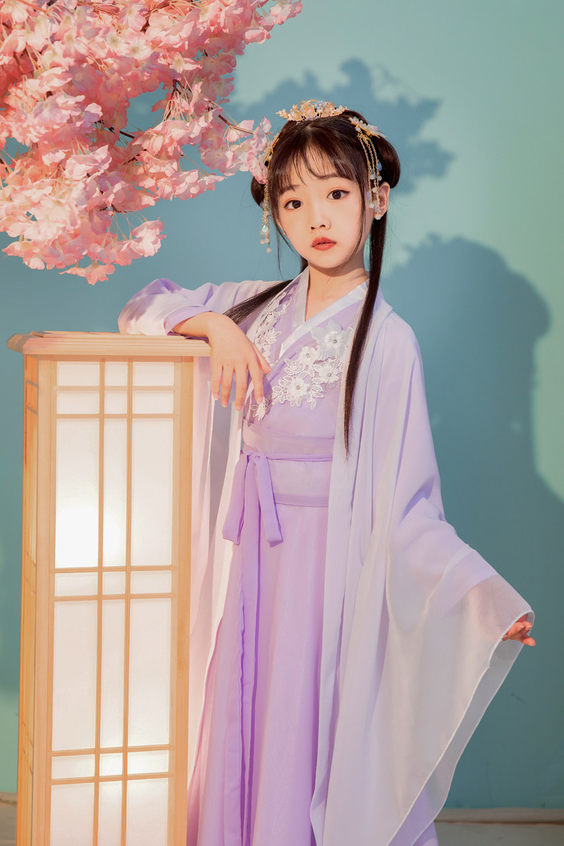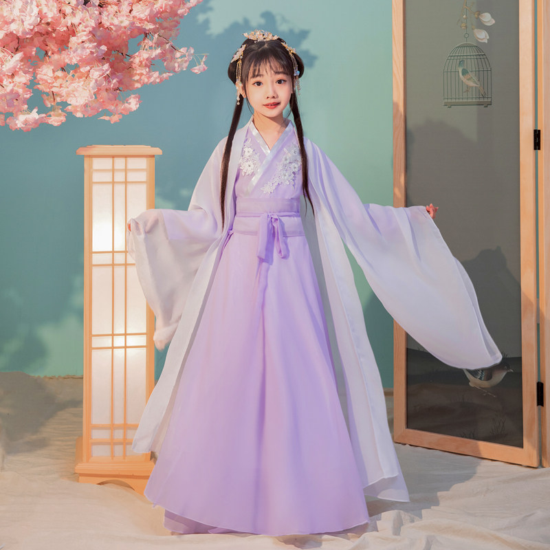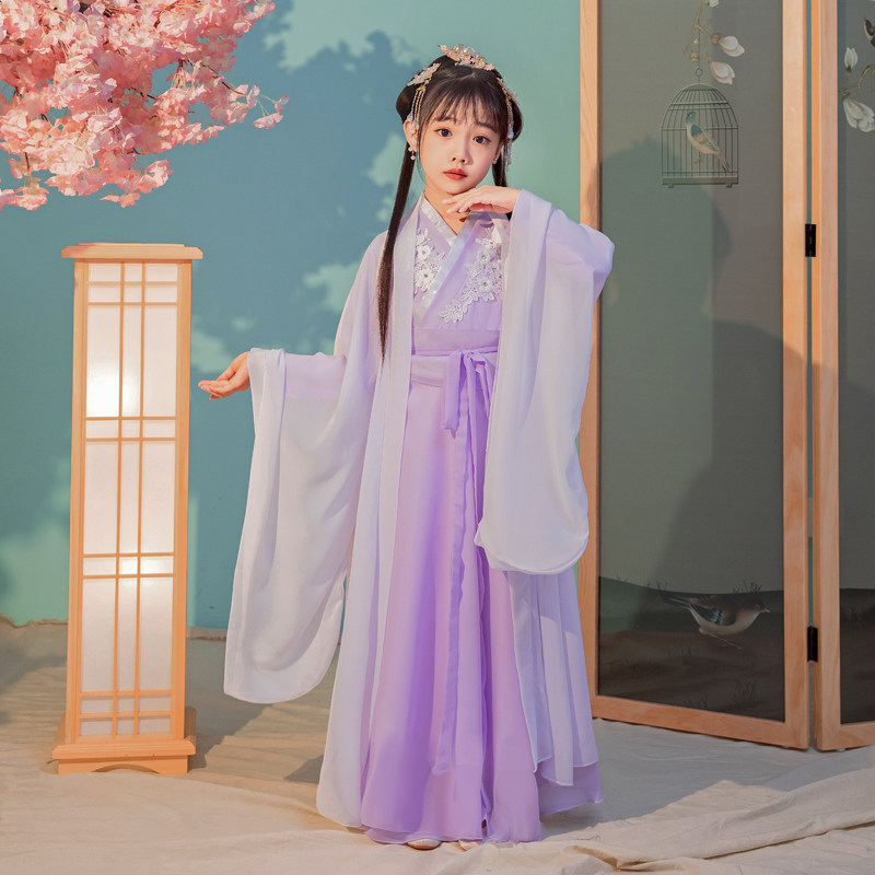 Girls Hanfu Children's Costume Super Immortal One-Piece Skirt Fluttering Autumn Long Sleeve Guzheng Dance Costume Princess Sakura Fairy