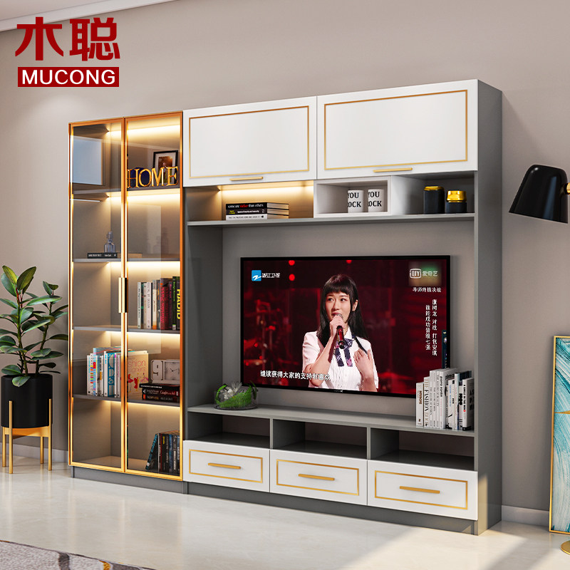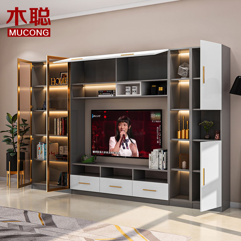 Living room integrated TV cabinet Modern simple combination wall cabinet Light luxury TV cabinet Background wall integrated 65-inch film and television cabinet