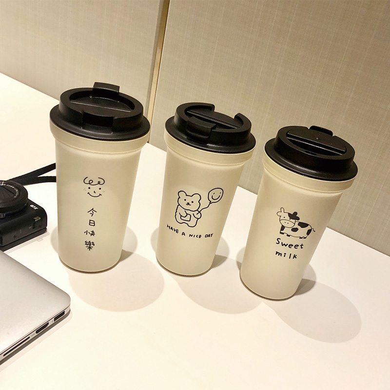 Water cup coffee cup portable accompanying cup hand milk tea simple take-out plastic office cup special with lid for household use