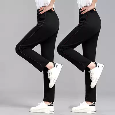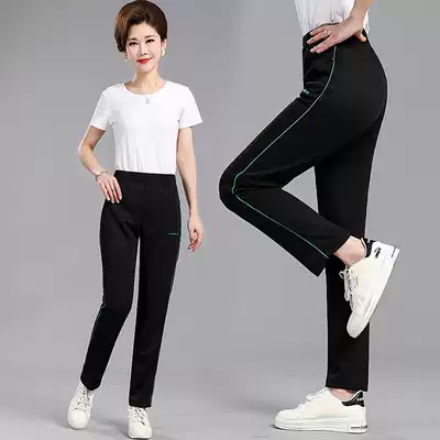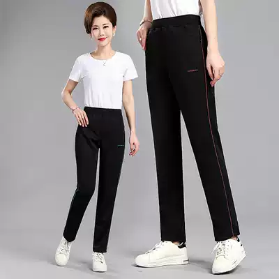 Middle-aged women's pants spring and autumn loose straight tube high waist 40-year-old mother elastic sweatpants running outside wear casual trousers