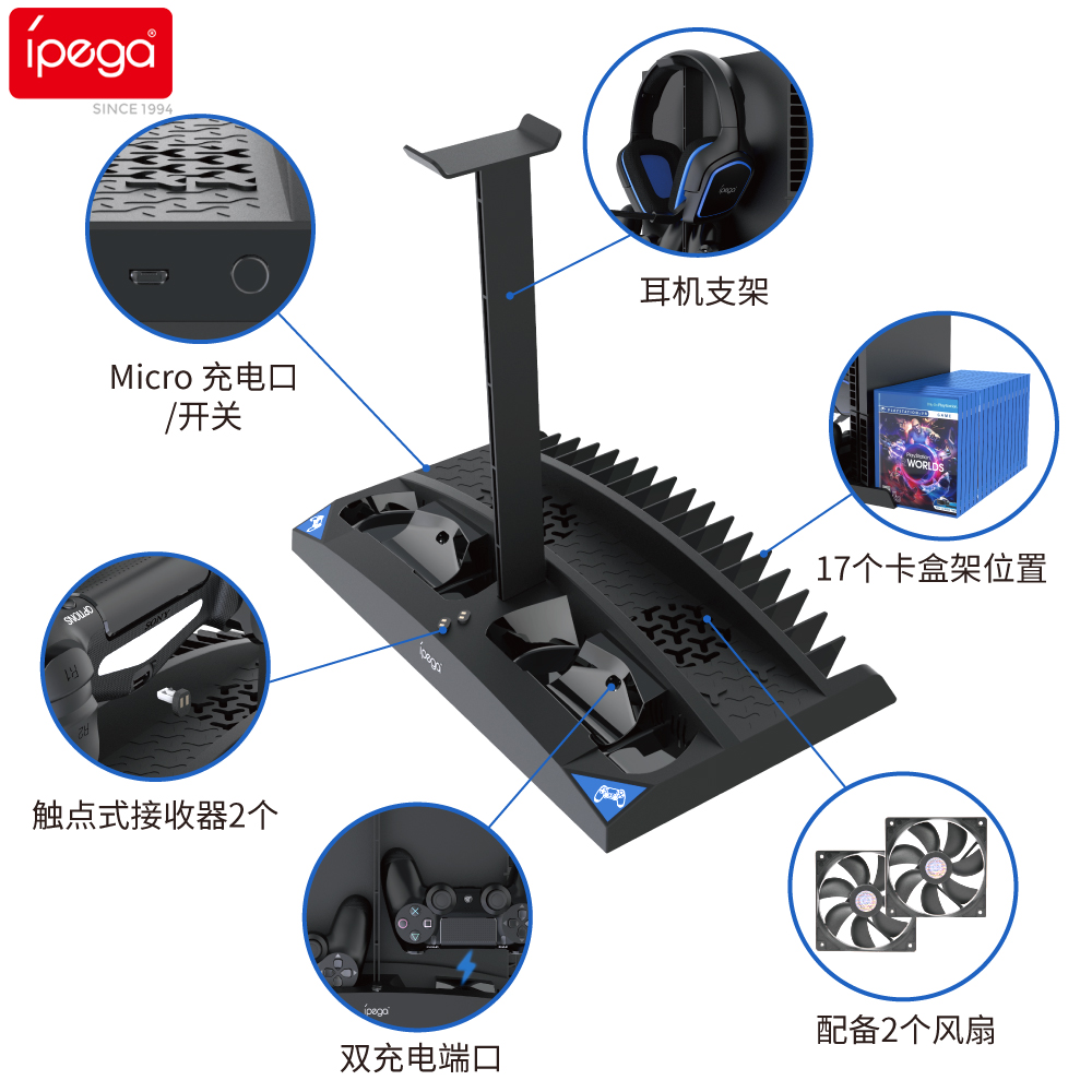 ipega PS4 6-in-1 Multifunction Base PS4 Seat Charging PS4 Host Stand Headphone Rack PS4 Handle Charger PS4 Heatsink
