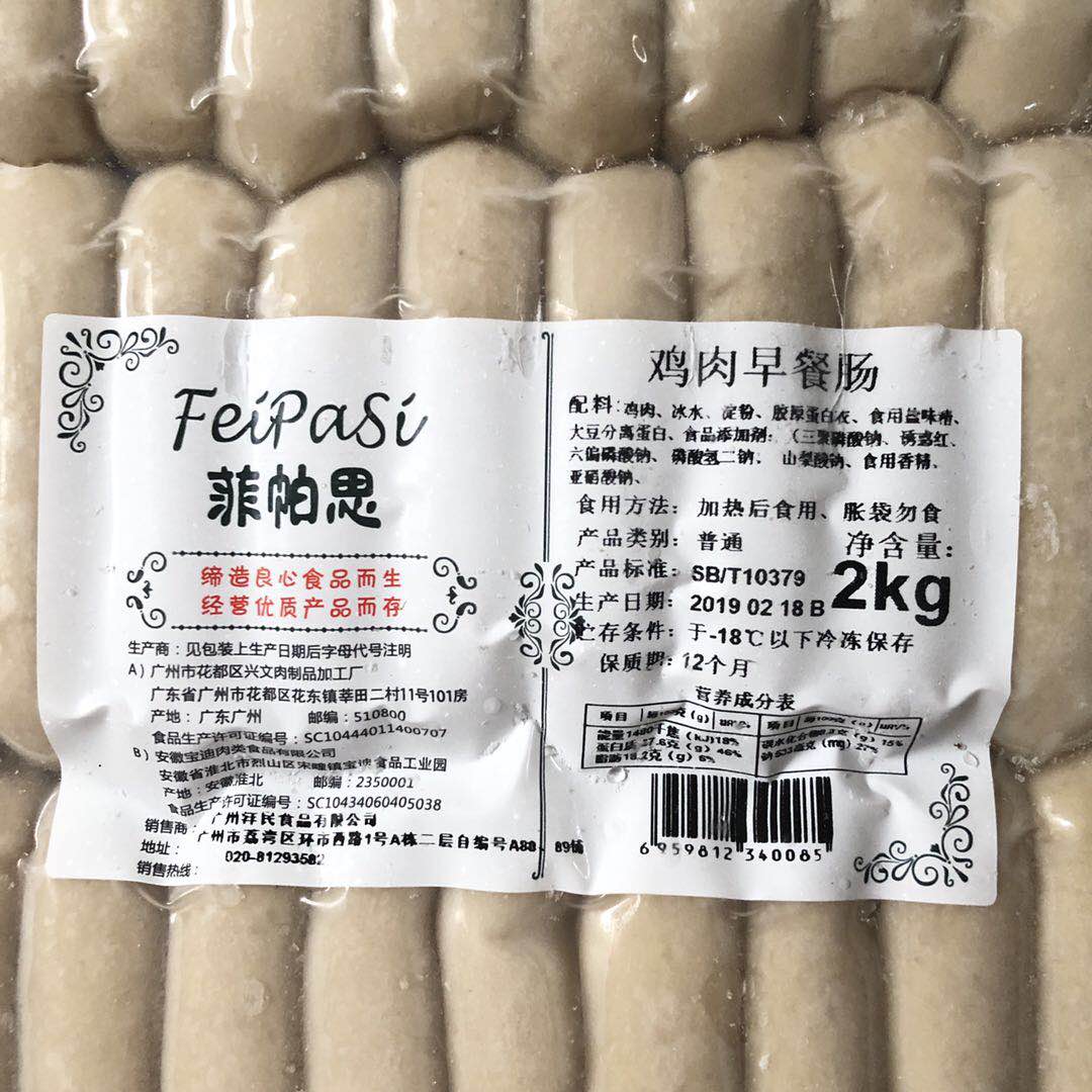 Fipath Chicken Breakfast Sausage 2KG Chicken Sausage Fried Baking Sausage Hotel West Restaurant Commercial Grilled Sausage