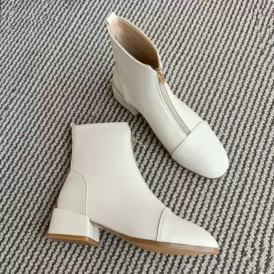 White square heel boots female spring and autumn single boots beige thick heel small heel slim boots soft leather middle heel zipper Martin boots