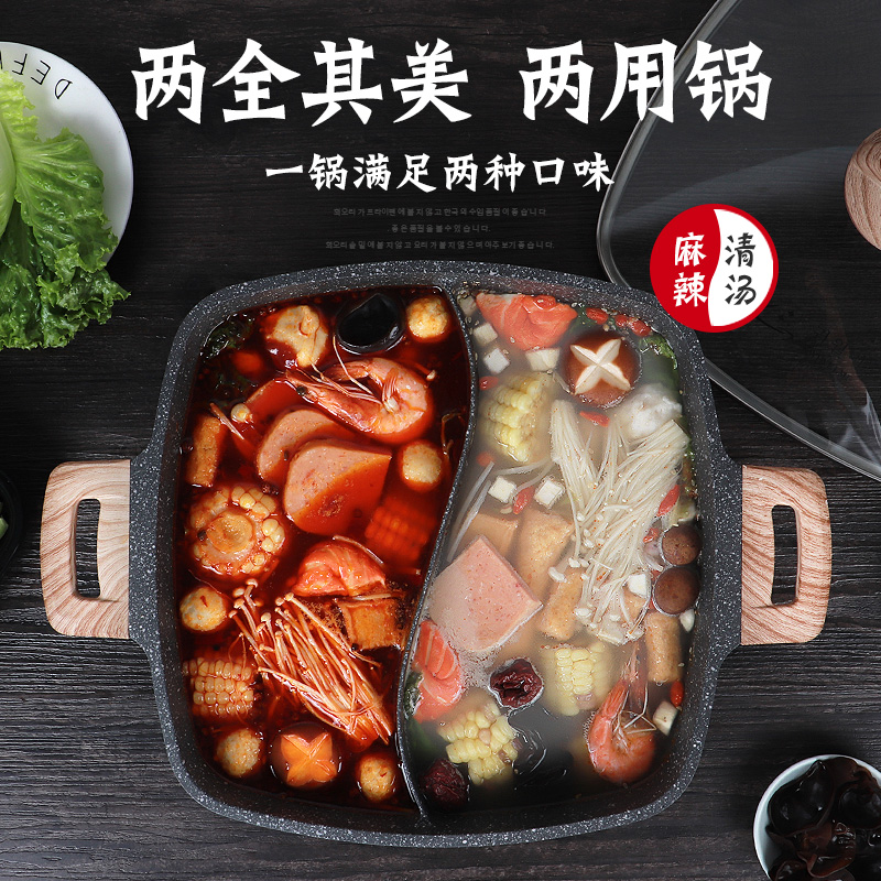Medical stone mandarin duck pot hot pot hot pot domestic induction stove special integrated pan small non-stick soup pot hot pot pan with pot