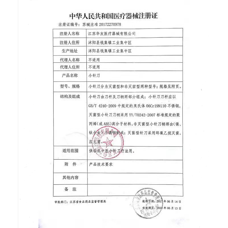 Huayou Hanzhang small needle knife disposable sterile traditional Chinese medicine acupuncture knife needle minimally invasive blade needle flat mouth oblique blade acupuncture needle