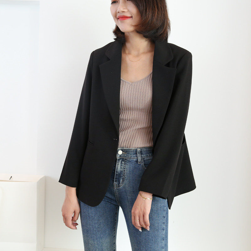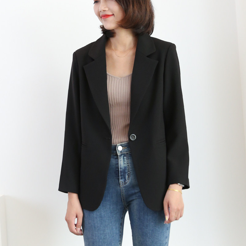 Spring black small suit jacket woman 2022 new Korean version professional black suit 100 lap suit black