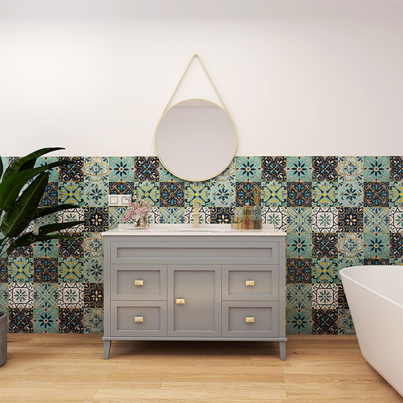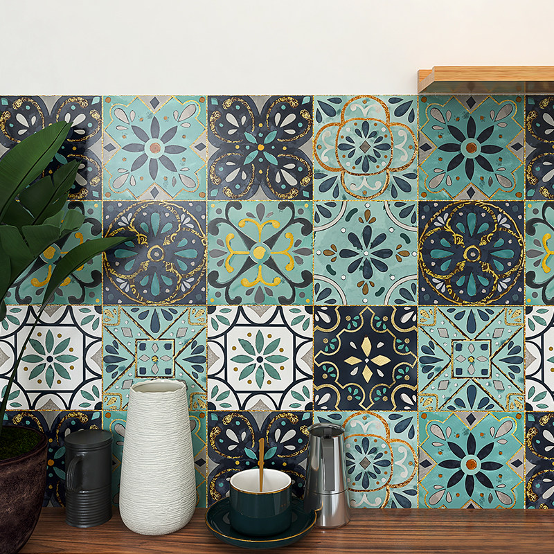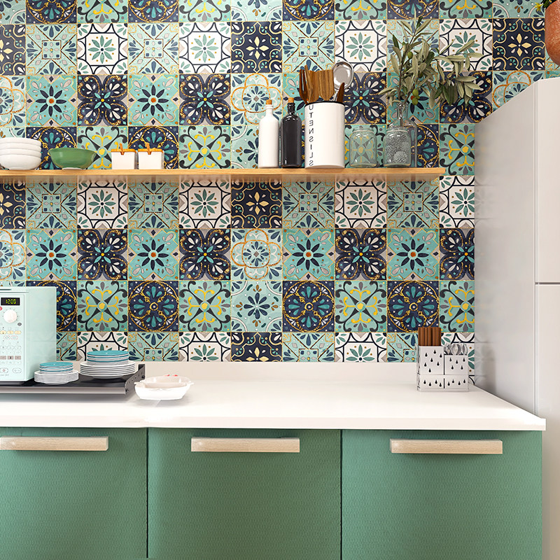 European retro kitchen oil-proof sticker stove wall high temperature powder room tile waterproof wallpaper renovation film